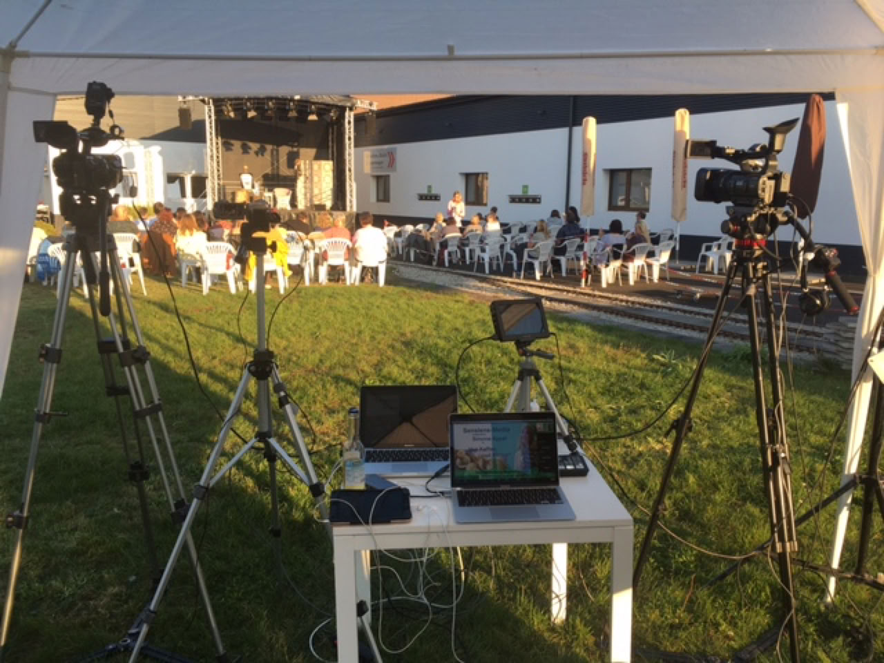 Zeigen Sie doch Ihren Event- oder Firmenfeier einfach live online über Youtube. Professionelles Equipment erlaubt eine TV-ähnliche Qualität via Internet zu übertragen. Die Aufzeichnung kann mit mehreren Kameras zeitgleich erfolgen und wird live gemixt und via W-Lan übertragen. (Leistungstarkes Internet am Ort vorausgesetzt.)